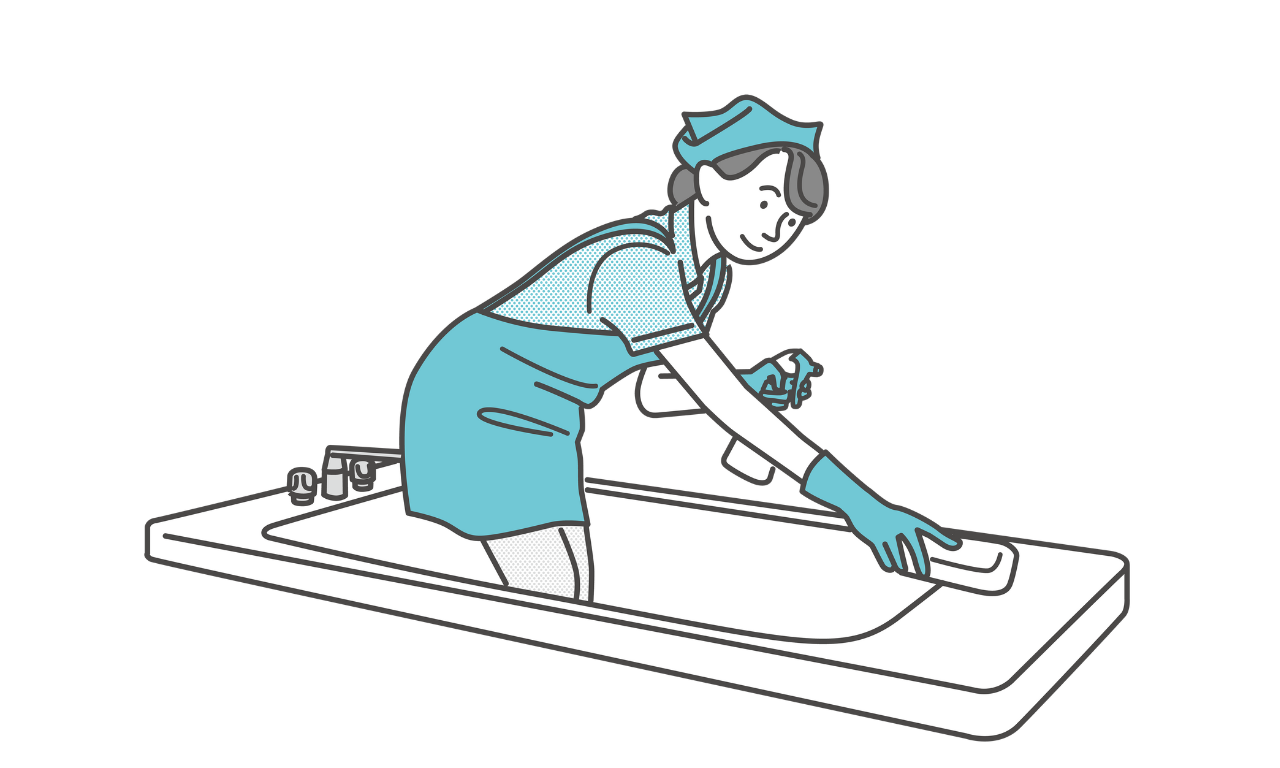 蛇口やボウル、鏡を中心に清掃し、清潔で快適に使える空間を実現します。朝の準備が気持ちよく始められます。